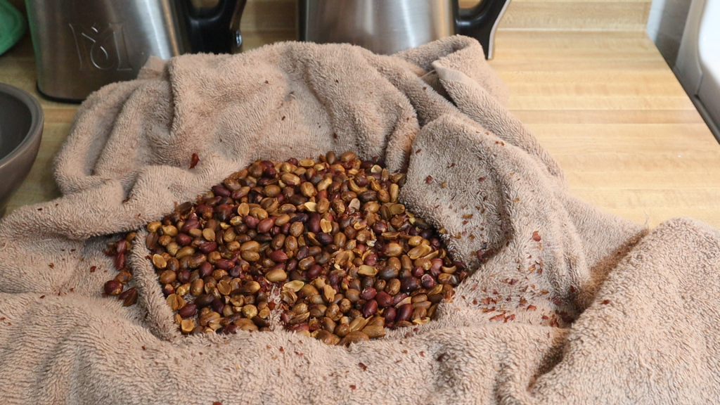 4. Place peanuts in a towel and rub together to get the shells of quicker