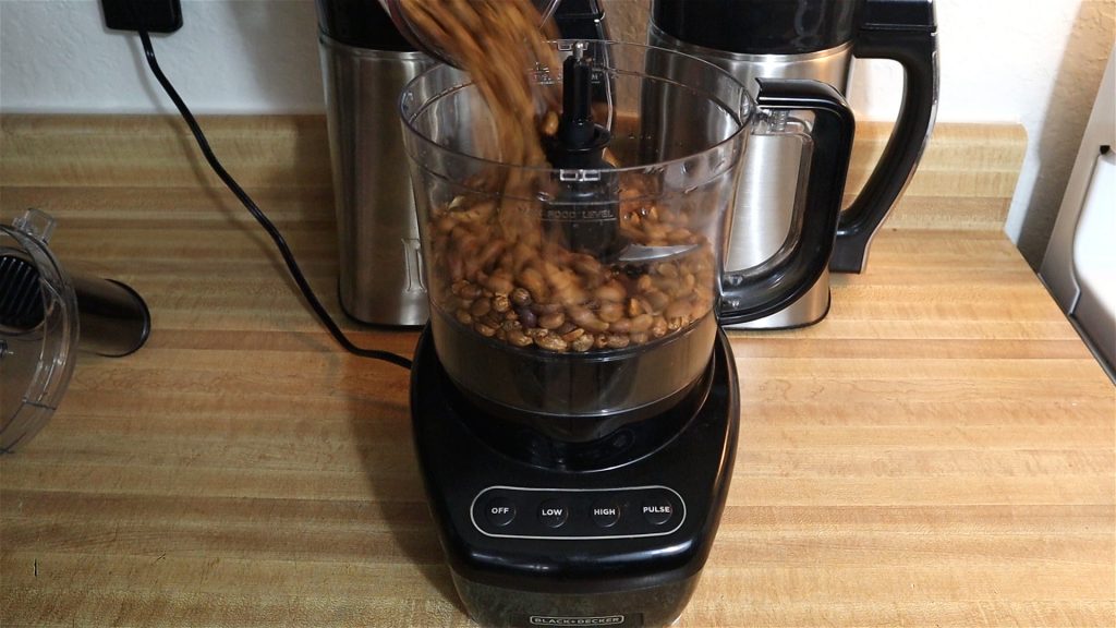 6. Close lid and run processor on low until the peanuts start blending